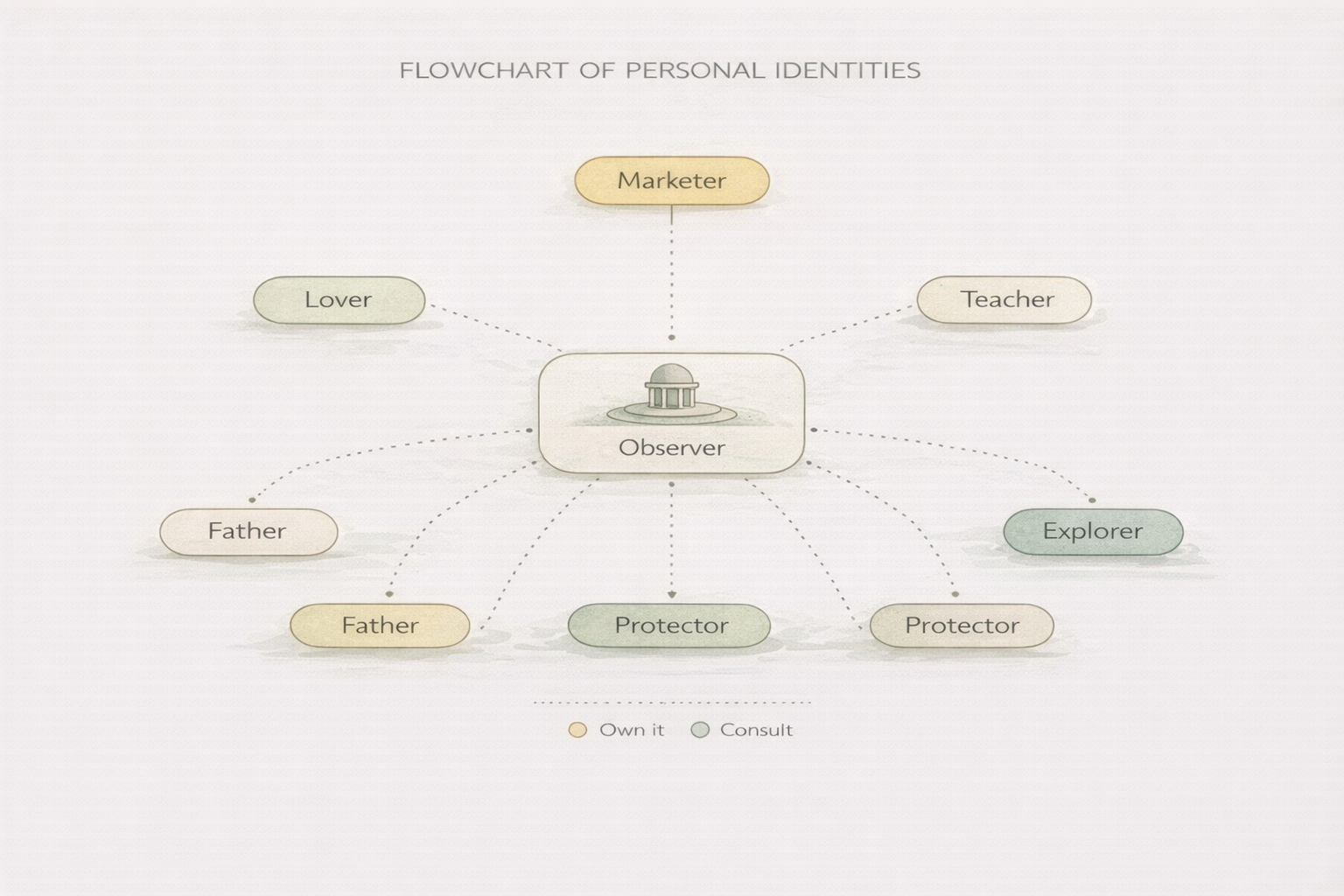 Begin by listing roles that hold legitimate interests in your life. Do not describe personality traits. Describe positions that could sit at a table and defend a direction of the future.